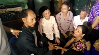 Ông Dùng (áo đen) gặp lại mẹ và người thân sau 30 năm mất tích. Ảnh: Tuổi Trẻ |