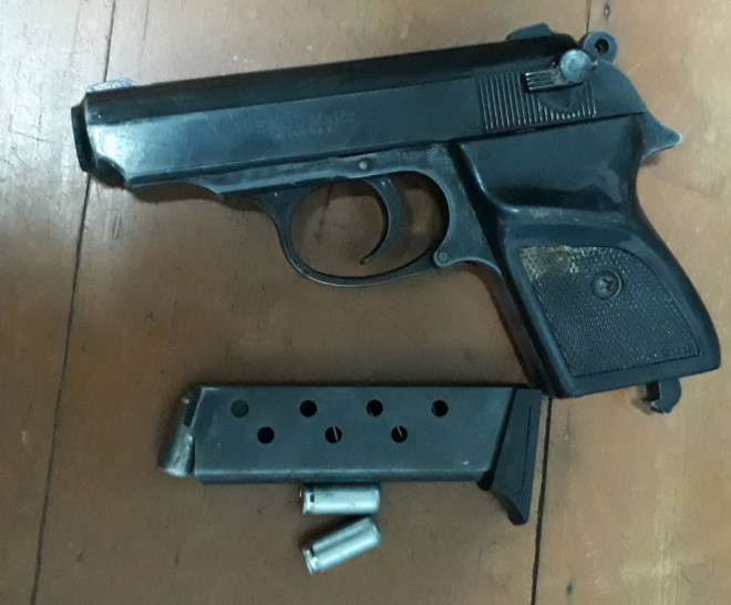 | Khẩu súng nghi phạm doạ bắn về phía cảnh sát. |