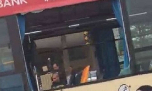 Cửa kính xe buýt bị thổi bay sau vụ nổ. Ảnh: SCMP |