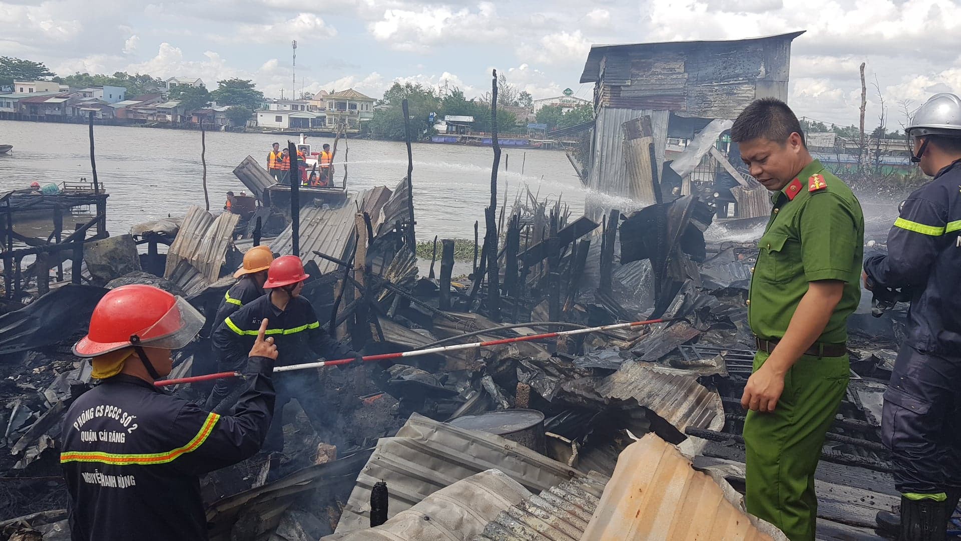 Nhận được tin báo, cảnh sát chữa cháy Công an TP Cần Thơ đã huy động 5 xe nước cùng hàng chục cán bộ đến hiện trường. Tàu chữa cháy cũng được huy động, đưa vòi rồng khống chế ngọn lửa từ sông Cái Răng.