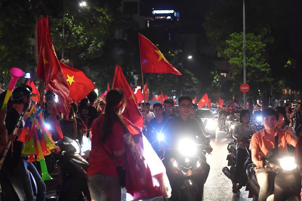 Chiến thắng đầy thuyết phục của đội tuyển Olympic Việt Nam trước Olympic Syria đã làm nức lòng người hâm mộ trên cả nước. Nếu như không khí cổ vũ giờ bóng lăn đã vô cùng cháy bỏng thì sự cuồng nhiệt khi người dân ăn mừng chiến thắng còn thăng hoa, sục sôi hơn gấp nhiều lần.