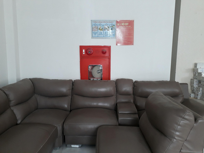 | Khu vực thủ PCCC cùng cầu thang thoát hiểm bị chặn bởi các bộ sô pha. |