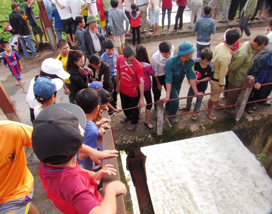 Hàng trăm người dân các xã vùng hạ Cẩm Xuyên tập trung theo dõi tình hình. Ảnh: Báo Hà Tĩnh |