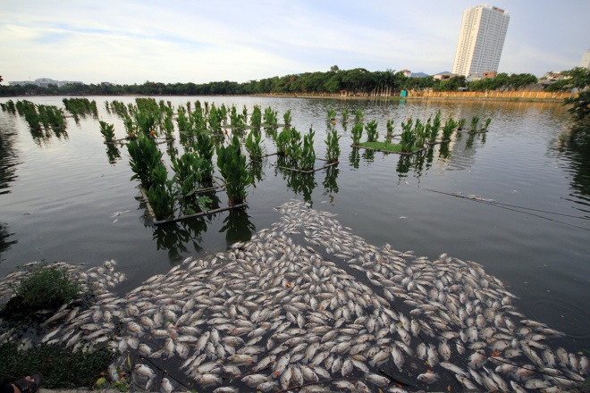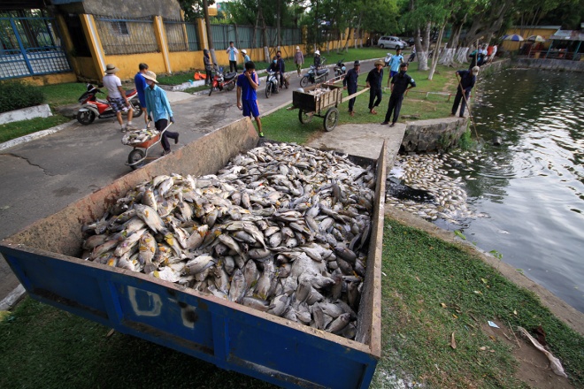 Ngày 1/8, cá trong hồ công viên 29/3 (quận Thanh Khê, Đà Nẵng) bất ngờ chết hàng loạt, dạt vào bờ. Chiều cùng ngày hàng tấn cá đã được vớt, nước hồ bốc mùi hôi thối.
