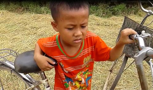 Cậu bé ở làng Vạn Hà, xã Quang Sơn, huyện Đô Lương (Nghệ An) năm nay lên lớp 1 nhưng lại bị bố mẹ cấm đến trường