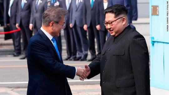Tổng thống Hàn Quốc Moon Jae-in gặp gỡ ông Kim Jong-un tại khu vực biên giới vào khoảng 9 giờ 30 phút, theo giờ địa phương (tức 7 giờ 30, theo thiờ Việt Nam) trước khi bắt đầu hội nghị thượng đỉnh tại khu vực phi quân sự (DMZ).