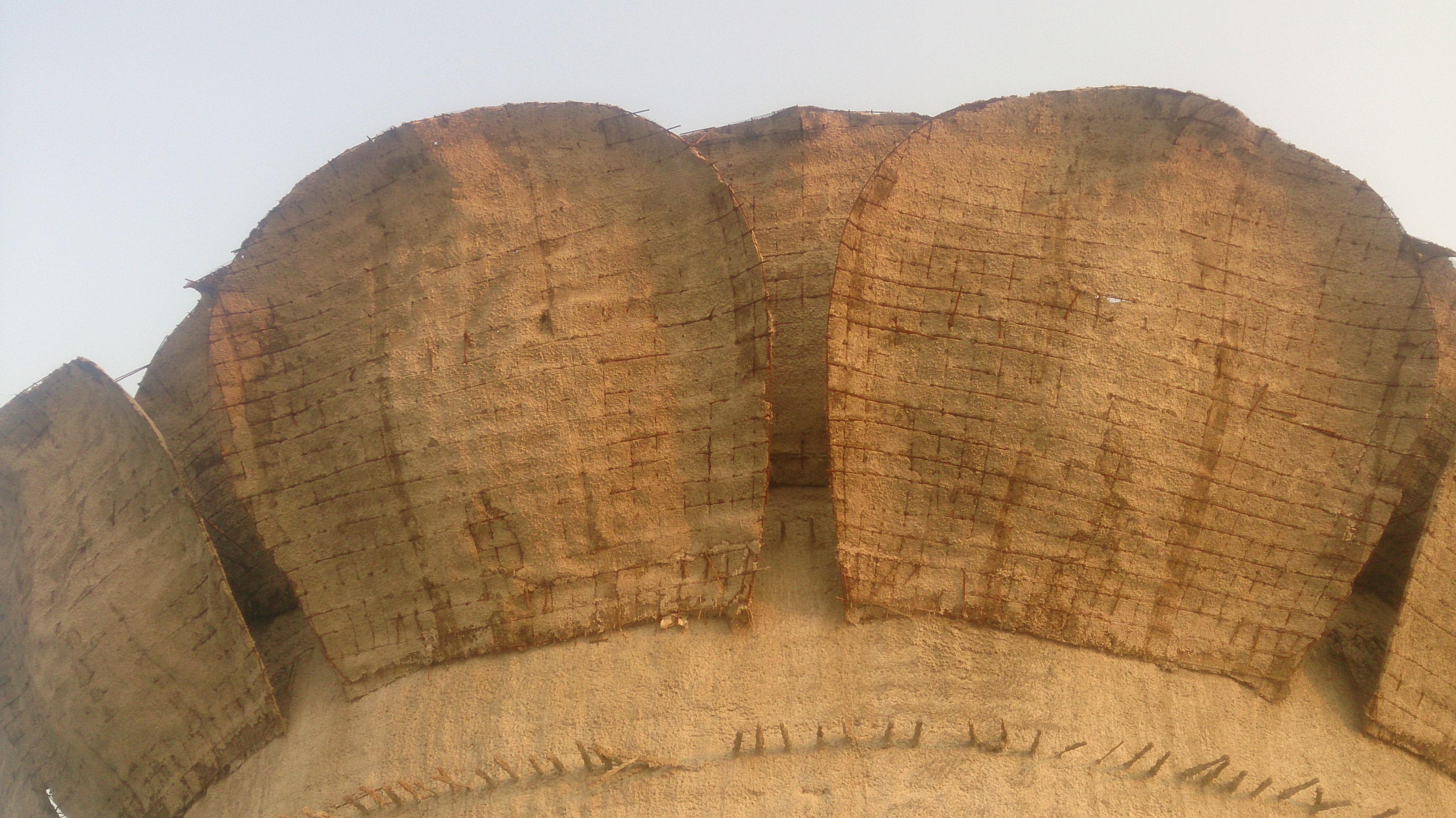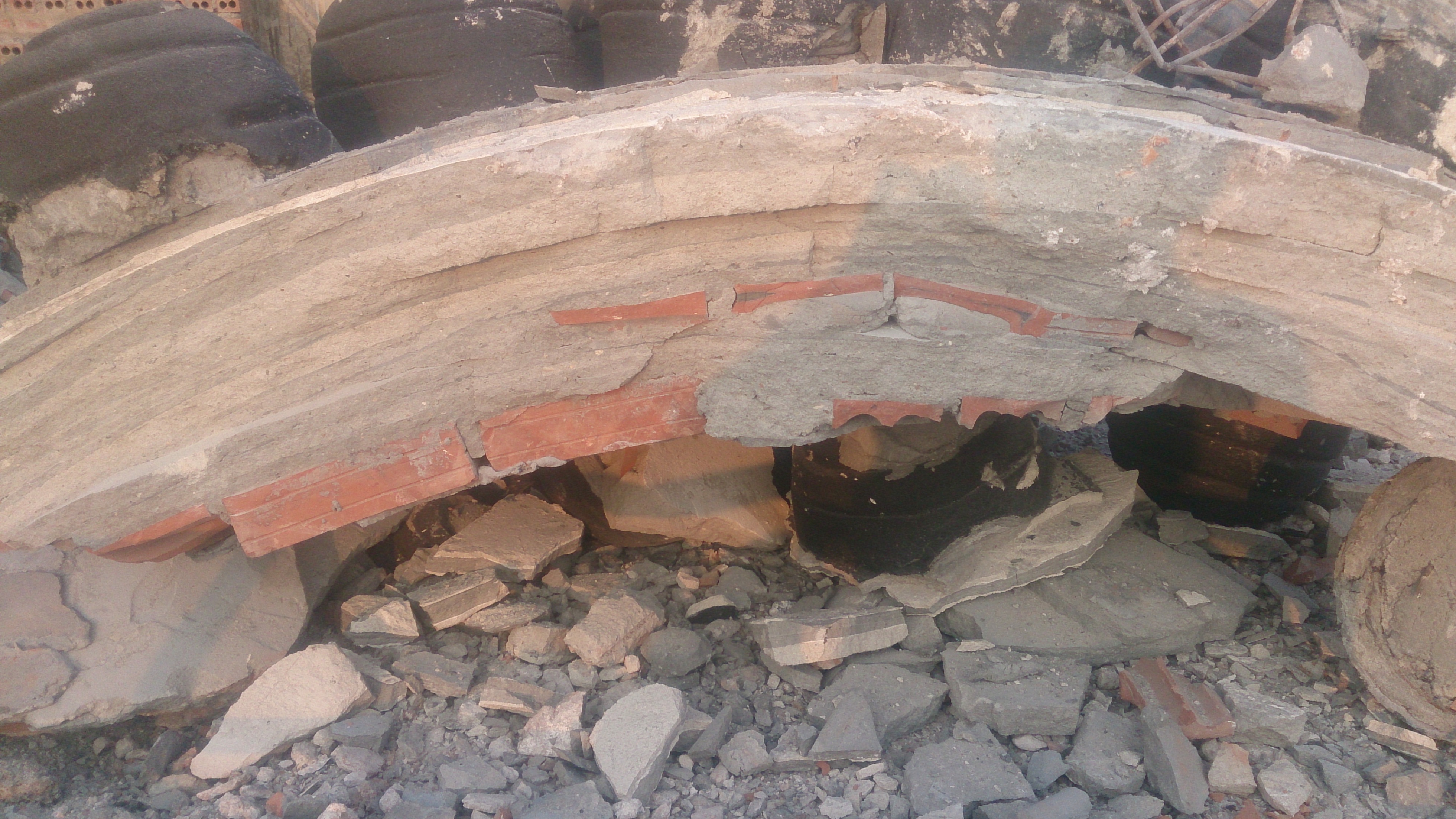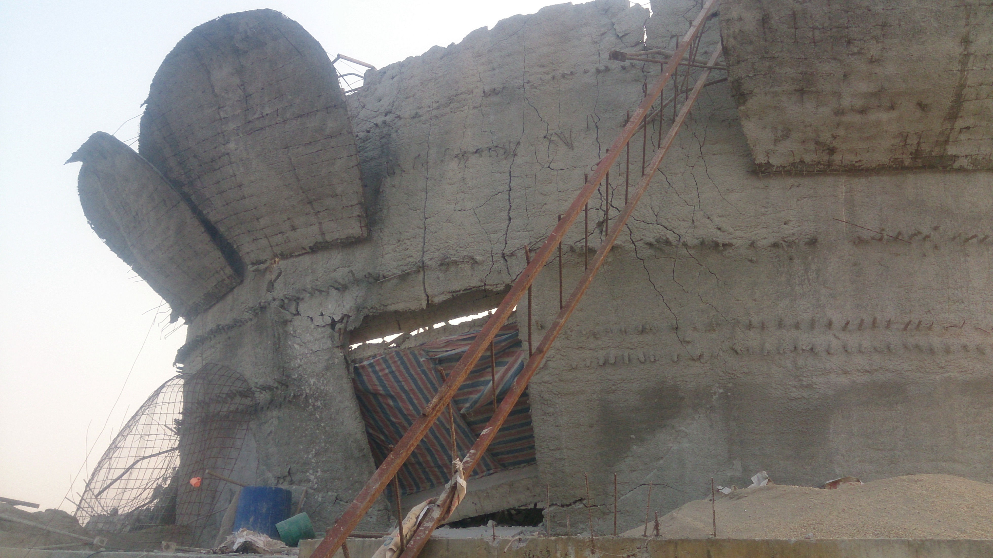 | Nhiều lớp xi măng và gạch được đắp thành thân tượng mà không hề có bê tông cốt thép |