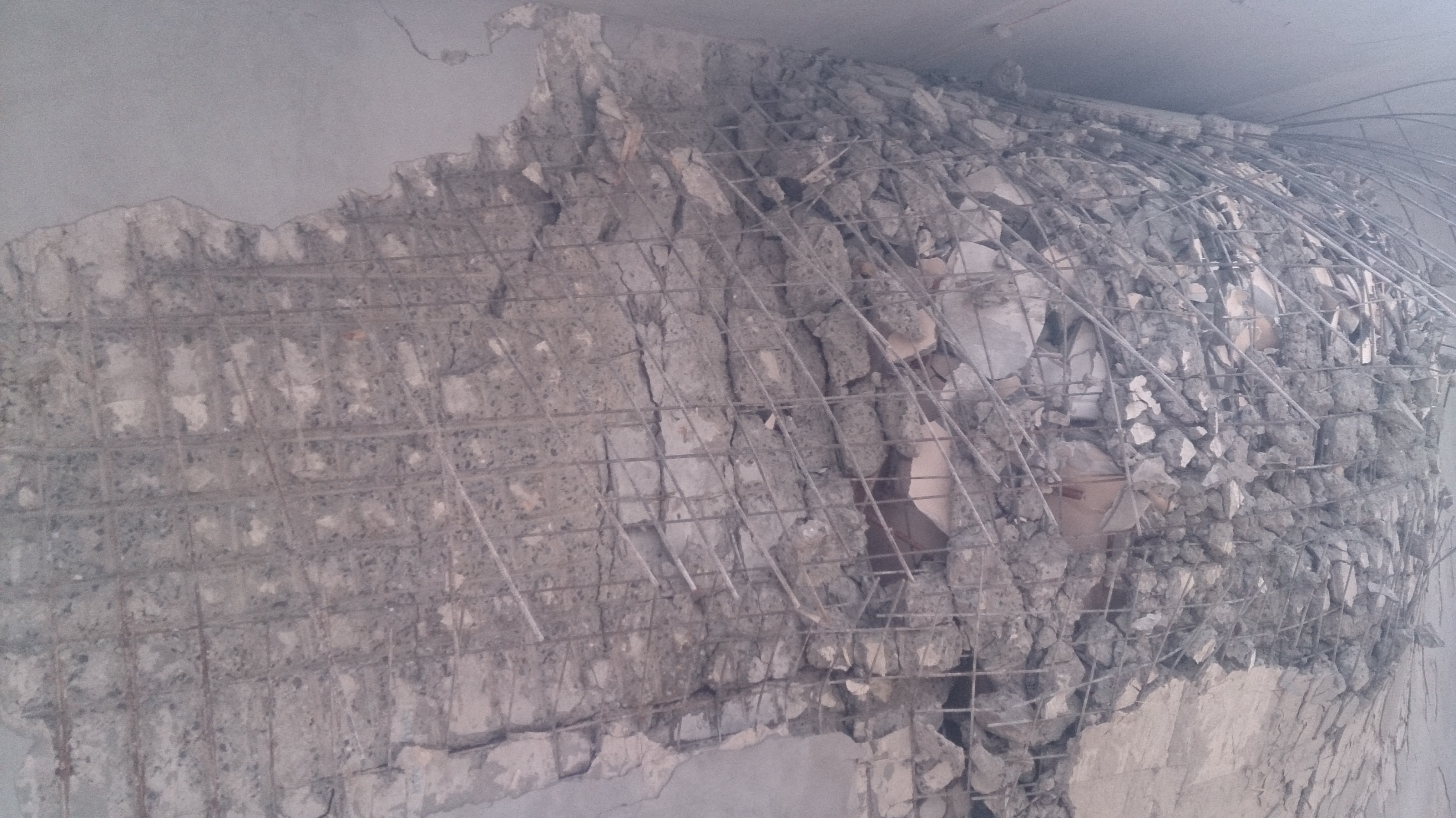 Khi bức tượng đổ sập cũng là lúc các lớp vôi vữa thô sơ hiện ra rõ. Những lớp thép trụ được cho là lõi trụ chỉ là những sợi thép "siêu nhỏ".