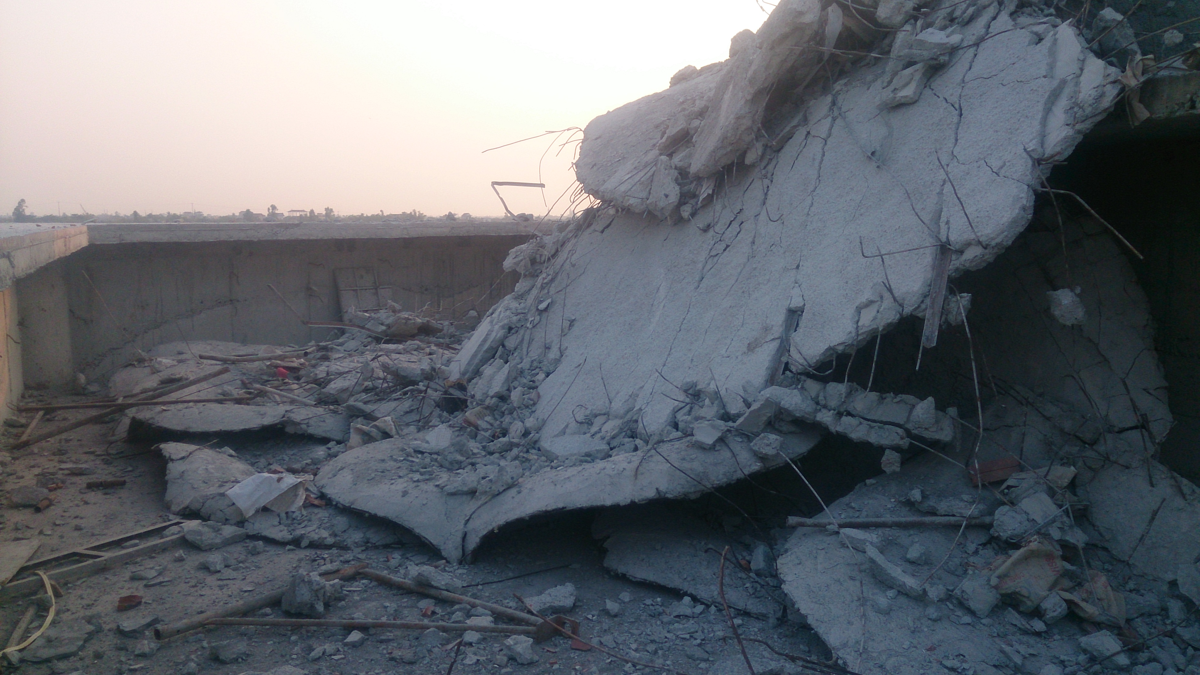 Những mảnh vỡ sau khi bức tượng bị sụp đổ, lộ ra sợi thép rất nhỏ không phù hợp với 1 bức tượng được cho là nặng đến 300 - 400 tấn