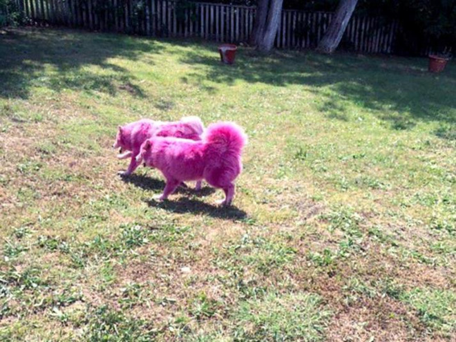 Chó Samoyed vốn sở hữu bộ lông trắng muốt, song chủ ba chú chó đã dùng hóa chất để biến chúng thành Samoyed hồng, Samoyed xanh nhằm thu hút sự chú ý của người dân và du khách ở các khu nghỉ dưỡng.