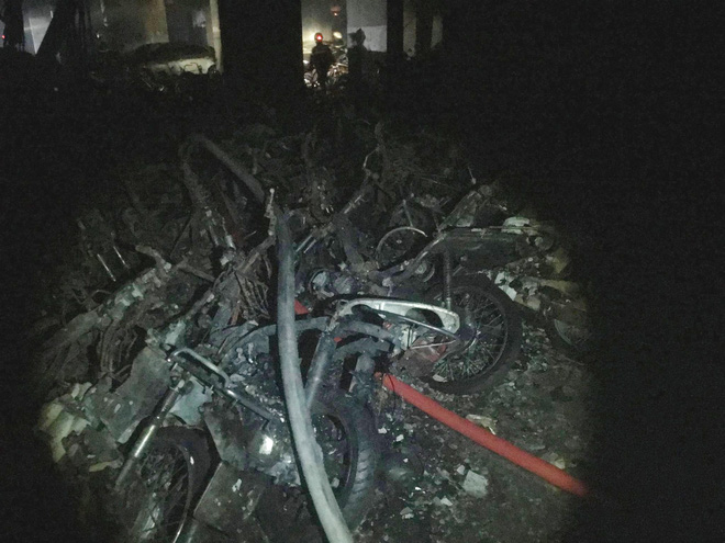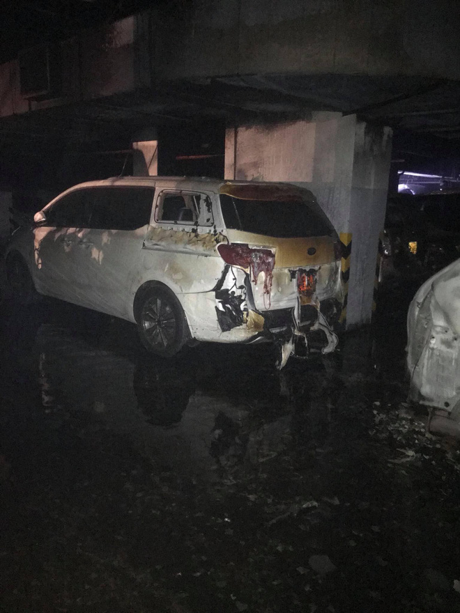 Cháy khoảng 300 m2 diện tích tầng hầm Block A cùng 15 xe ô tô (trong đó có 5 xe cháy hoàn toàn), cháy hoàn toàn 150 xe gắn máy các loại.
