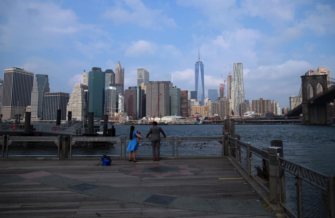 | Mọi người đứng tại bến tàu Brooklyn, nhìn qua sông Đông để ngắm WTC và tòa nhà Manhattan vào ngày 4/9/2015. Ảnh: Gordon Donovan/Yahoo News |