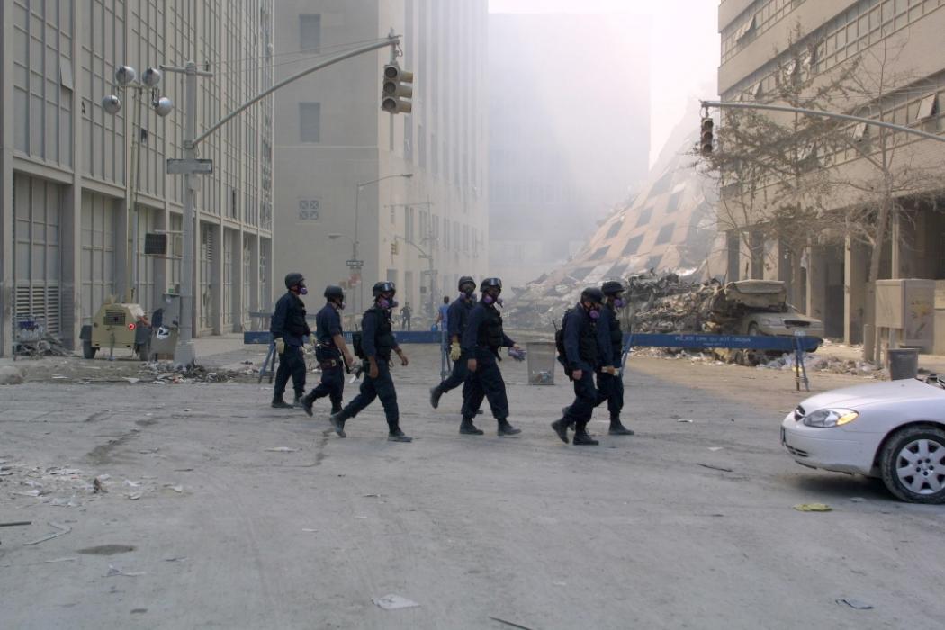 | Cảnh sát New York tuần tra khu tổ hợp WTC vào ngày 13/9/2001. Ảnh: James Estrin / Getty Images |
