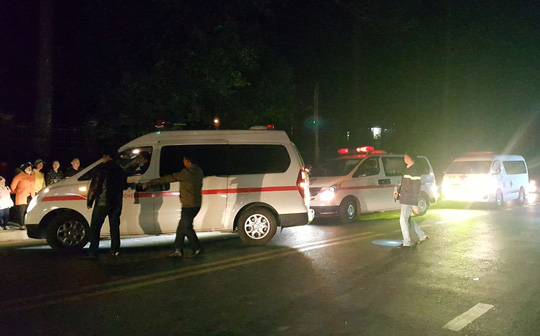 | Xe cấp cứu được điều đến hiện trường. Ảnh NLĐ |