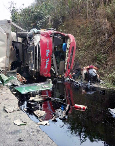 Vụ tai nạn giao thông xảy ra vào khoảng 16h30 ngày 14/3, trên quốc lộ 6, đoạn qua đèo Thung Khe, dốc Mai Châu, Hòa Bình.