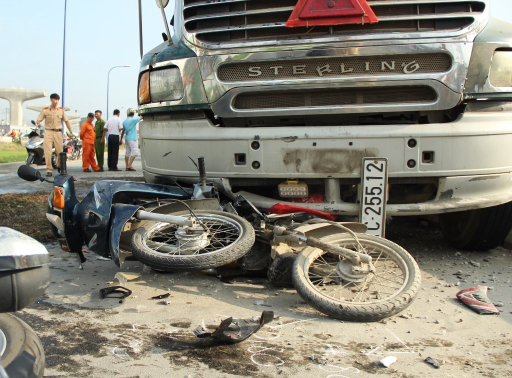 Chiếc xe bồn đang đổ dốc trên cầu Rạch Chiếc (Tp HCM) bất ngờ mất lái, đâm và cuốn hàng loạt xe máy đang chờ đèn đỏ ở làn đường bên cạnh. Tại hiện trường vụ tai nạn, nhiều xe máy bị hư hỏng nằm la liệt dưới gầm xe tải.