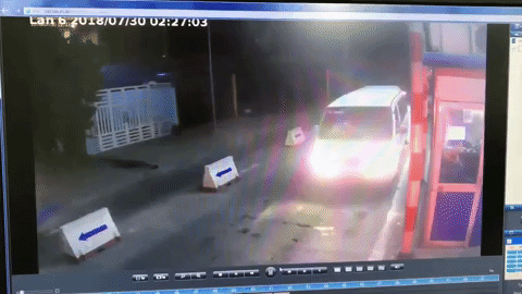 | Xe dâu đi qua trạm thu phí. Ảnh cắt từ clip |