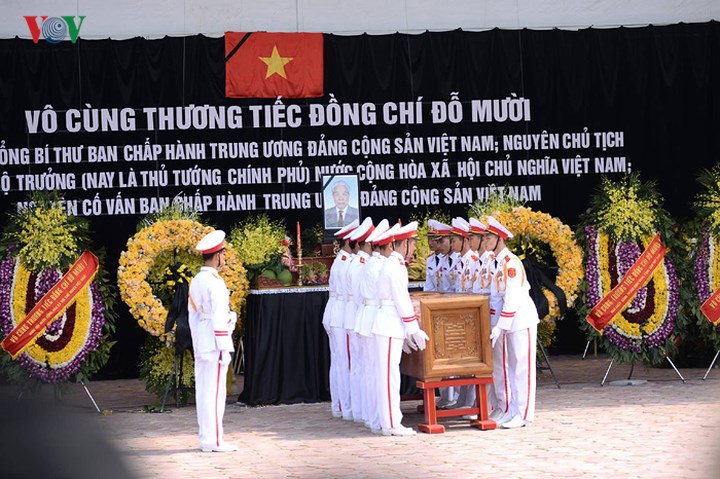 Lễ truy điệu đồng chí Đỗ Mười tổ chức vào 9 giờ, ngày 7/10/2018, tại Nhà Tang lễ Quốc gia - số 5 Trần Thánh Tông (Hà Nội) và Hội trường Thống Nhất (Thành phố Hồ Chí Minh). Lễ an táng từ 13 giờ cùng ngày tại quê nhà, Khu Ma Vang, thôn 1, xã Đông Mỹ, huyện Thanh Trì, thành phố Hà Nội. Ảnh Trí thức trẻ