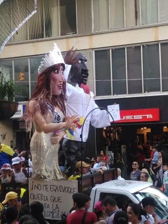 Mới đây, một chàng trai người Colombia đã gây bất ngờ với hành động ăn mừng bằng cách đốt hình nộm của Tân hoa hậu Hoàn vũ và MC Stever Harvey.
