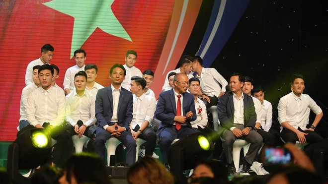 Những cầu thủ còn lại cùng HLV trưởng Park Hang Seo, trợ lý Lê Huy Khoa, bác sỹ Nguyễn Trọng Thủy đều đã có mặt tại trường quay tham dự buổi giao lưu.