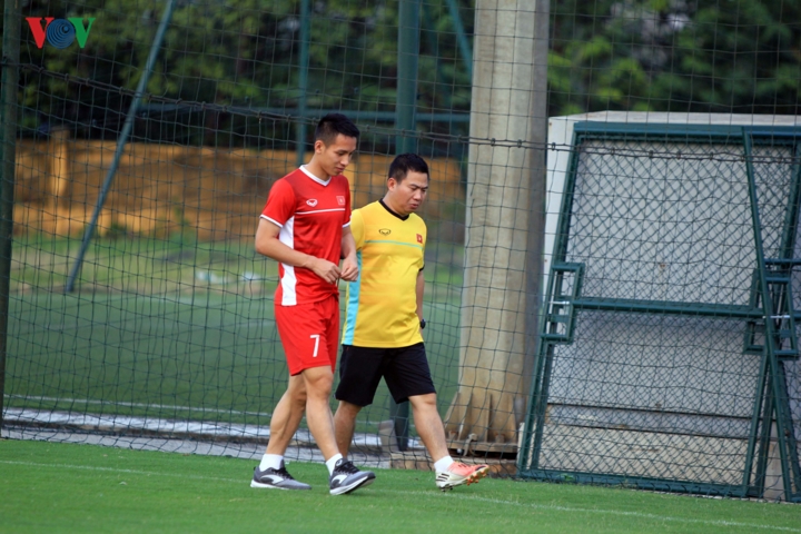 | Hùng Dũng phải tập riêng vì anh gặp phải chấn thương sau trận đấu với ĐT Philippines. Ảnh VOV |