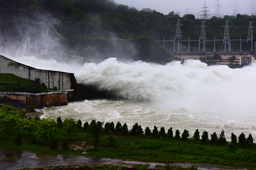 | Thuỷ điện Hoà Bình phải mở 8 cửa xả đáy do lưu lượng nước quá lớn về đột ngột. Ảnh: Vnexpress |