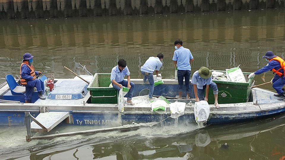 Trước đó ngày 18/5, Chi cục Bảo vệ nguồn lợi thủy sản TP.HCM cũng đã nhập về 30 tấn chế phẩm sinh học zeolite rải xuống kênh Nhiêu Lộc - Thị Nghè để làm sạch nguồn nước, khử mùi và làm tăng ô xy trong nước.