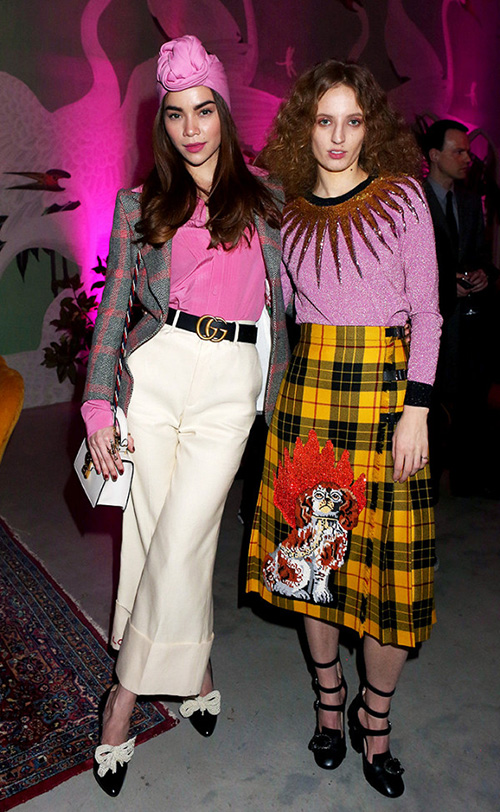Thời gian qua, Hồ Ngọc Hà gây chú ý khi tham dự sự kiện thời trang Milan Thu Đông 2017 và vui tươi tạo dáng bên Tom Hiddleston tại show Gucci. Tại chuỗi sự kiện này, nữ ca sĩ Việt Nam diện nhiều bộ trang phục khác nhau, nhưng được đánh giá cao nhất là set đồ gồm jacket phối với áo sơ mi, khăn đội đầu màu hồng cùng quần ống rộng của thương hiệu Gucci mà cô đang làm Đại sứ.
