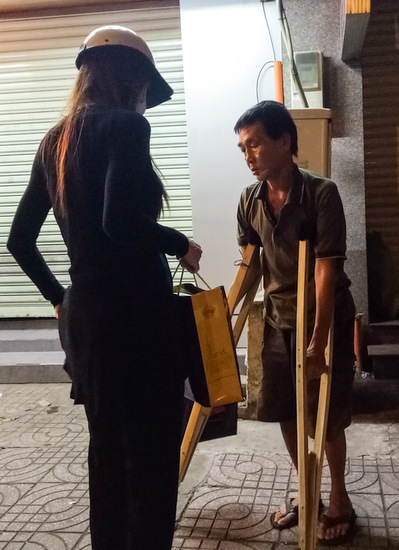 Nữ ca sĩ Hồ Ngọc Hà di chuyển bằng xe máy lúc nửa đêm để trao quà cho những người vô gia cư ở TP HCM.