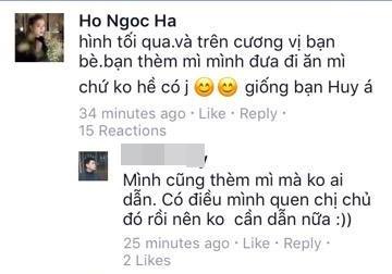 "Hình tối qua, trên cương vị bạn bè, bạn thèm mì mình đưa đi ăn chứ không hề có gì", Hà Hồ khẳng định về bức hình đi ăn cùng Quốc Cường đang gây bão mới đây.