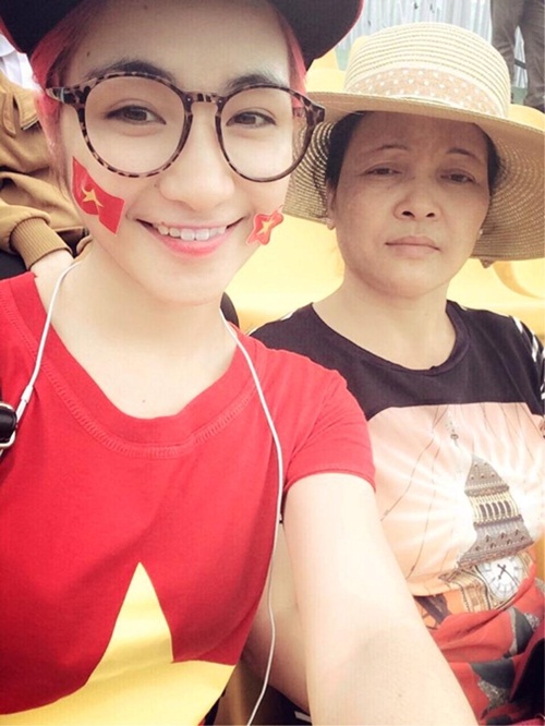 | Từng đưa mẹ đi xem bóng đá ngay trước ngày “bén duyên” với bạn trai Công Phượng. |