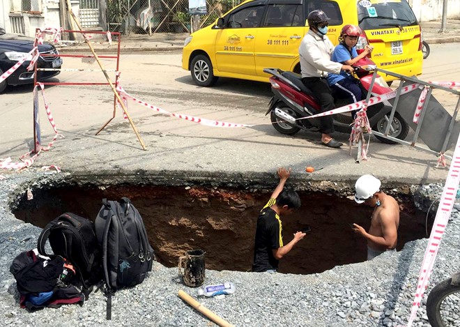 Đến thời điểm sáng ngày 2/4, miệng hố tử thần đã có kích thước lên đến gần 4m, khoét sâu xuống bên dưới gần 2m. Sự cố khiến giao thông trên đường Lê Văn Việt gặp rất nhiều khó khăn.