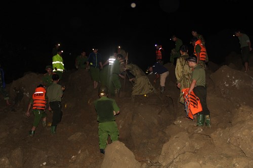 Ngay sau khi vụ sạt lở núi kinh hoàng xảy ra, các lực lượng chức năng, lực lượng tìm kiếm cứu nạn của xã, huyện và tỉnh Hòa Bình đã có cơ động ngay trong đêm đến hiện trường để thực hiện công tác cứu nạn.