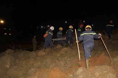 Trả lời trên Quân Đội Nhân Dân, Đại tá Vũ Thành Nam, Phó chỉ huy trưởng-Tham mưu trưởng Bộ CHQS tỉnh Hòa Bình cho biết, Bộ CHQS tỉnh đã điều động nhiều lực lượng đến hiện trường cứu hộ. Tại hiện trường, chúng tôi ghi nhận, công tác cứu hộ đang được tiến hành rất khẩn trương, 7 thi thể đầu tiên đã được đưa lên khỏi khối đất đá khổng lồ. Tuy nhiên, do trời còn rất tối nên các lực lượng gặp nhiều khó khăn.