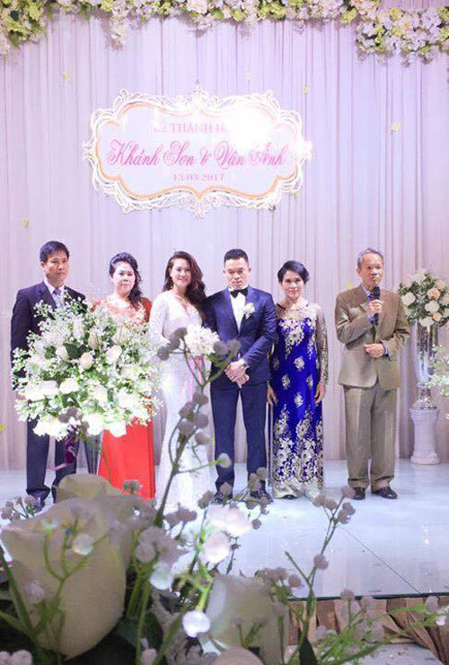 Sáng 13/3, hôn lễ của Hoa hậu biển, diễn viên Vân Anh cùng ông xã Khánh Sơn diễn ra tại một nhà hàng ở Hà Nội. Tiệc cưới được tổ chức vớ khoảng 100 khách mời là những người thân trong gia đình hai bên và bạn bè, đồng nghiệp trong giới giải trí của Hoa hậu biển Vân Anh.