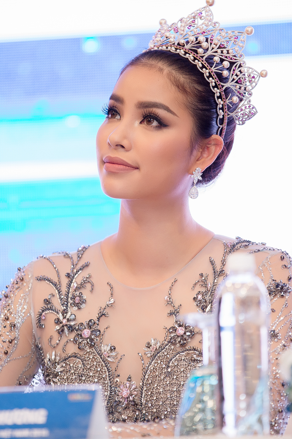 | Ngay khi xuất hiện tại buổi họp báo, hình ảnh Phạm Hương xinh đẹp trong bộ trang phục này, trên đầu đội vương miện cao quý, đã xuất hiện dầy đặc trên Cộng đồng mạng và được đánh giá rất cao. Sau chương trình, hoa hậu Phạm Hương và NTK Đỗ Long cũng rất hài lòng về hình ảnh của Phạm Hương trong bộ trang phục đẹp mắt này. |