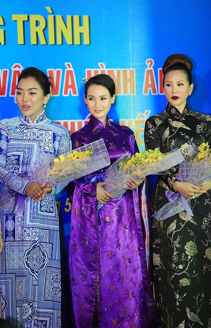 | Ngày 25/5, Hoa hậu quý bà Châu Á tại Mỹ Sương Đặng cùng diễn viên Việt Trinh diện các thiết kế áo dài gấm sang trọng, đài các của NTK Nhật Dũng xuất hiện tại sự kiện Lễ trao tặng 20 bộ áo dài và 200 bức ảnh áo dài của Nhật Dũng cho bảo tàng Phụ nữ Nam Bộ. |