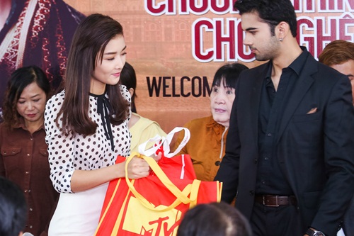 Gặp hai diễn viên của bộ phim "làm mưa làm gió" màn ảnh Việt suốt thời gian qua, Triệu Thị Hà bắt tay chào hỏi thân thiết. Cả hai tỏ ra bất ngờ khi biết Triệu Thị Hà cũng đang theo đuổi con đường diễn xuất chuyên nghiệp tại Việt Nam.