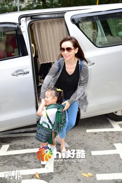 Dương Tư Kỳ tranh thủ đưa con gái đến trường khi không bận rộn công việc. |
