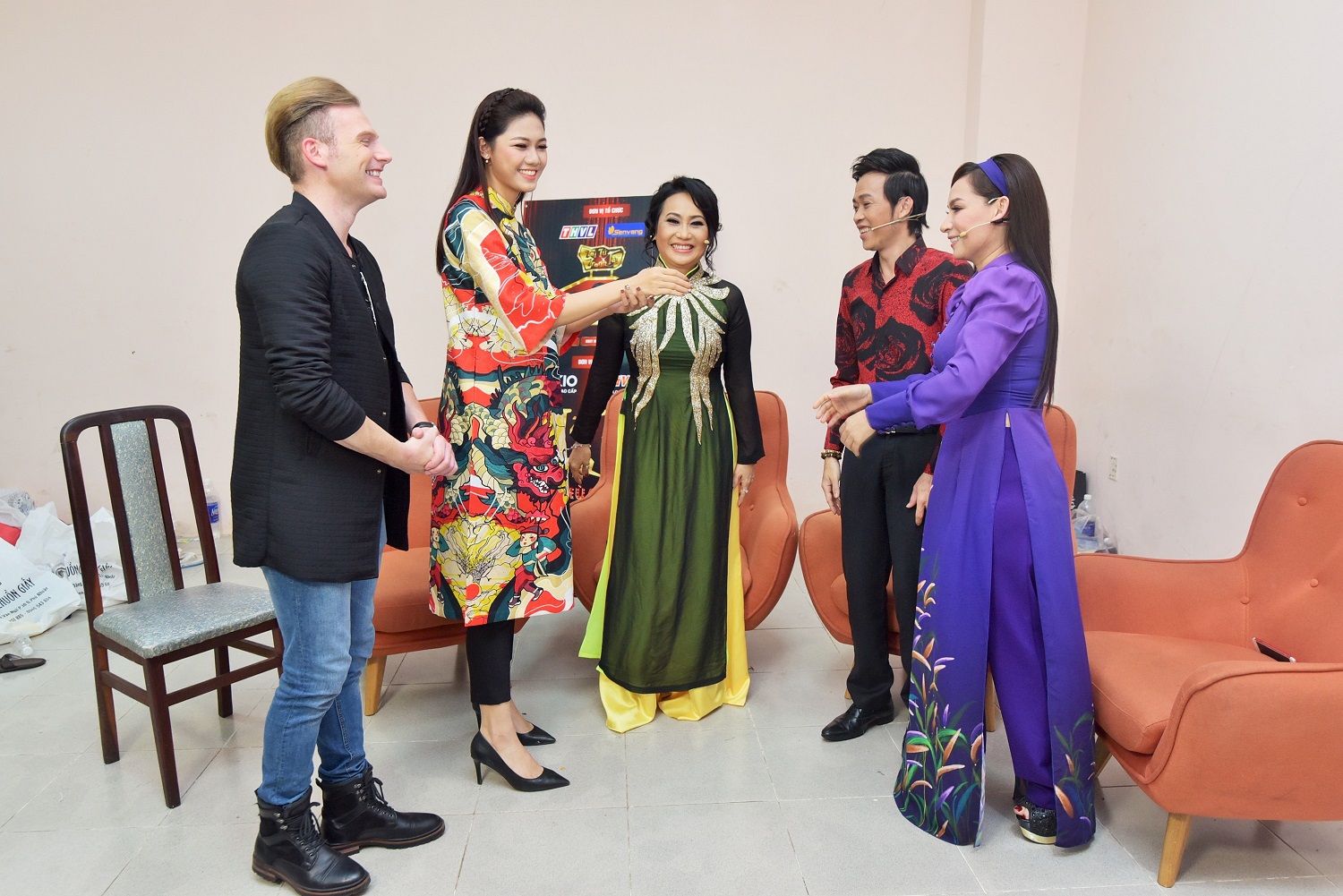 | Kyo York và Ngô Thanh Thanh Tú đã có buổi trò chuyện vui vẻ với giám khảo trước khi ghi hình. |