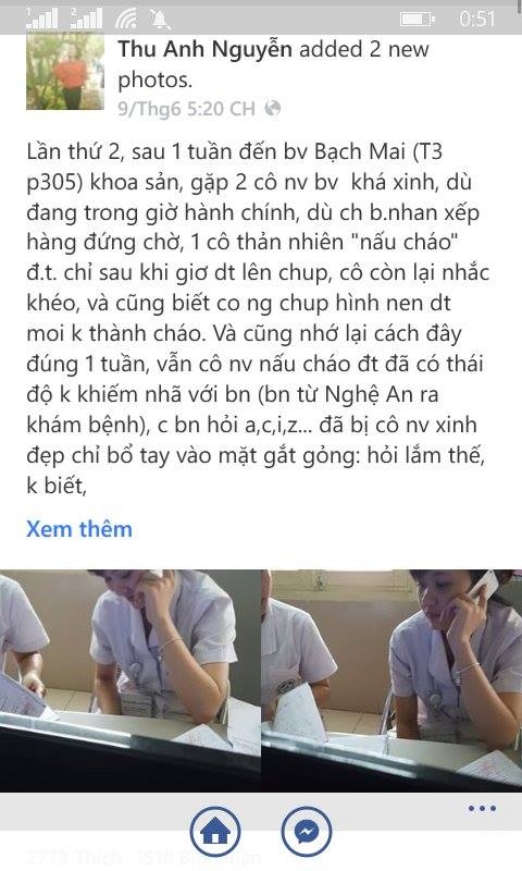 Theo thông tin trên báo Người Lao Động, VnExpress, ngày 22/6, Cục Quản lý Khám chữa bệnh cho biết, đã nhận được văn bản báo cáo của Bệnh viện Bạch Mai về trường hợp của nữ nhân viên khoa sản bị tố buôn điện thoại trong giờ hành chính.
