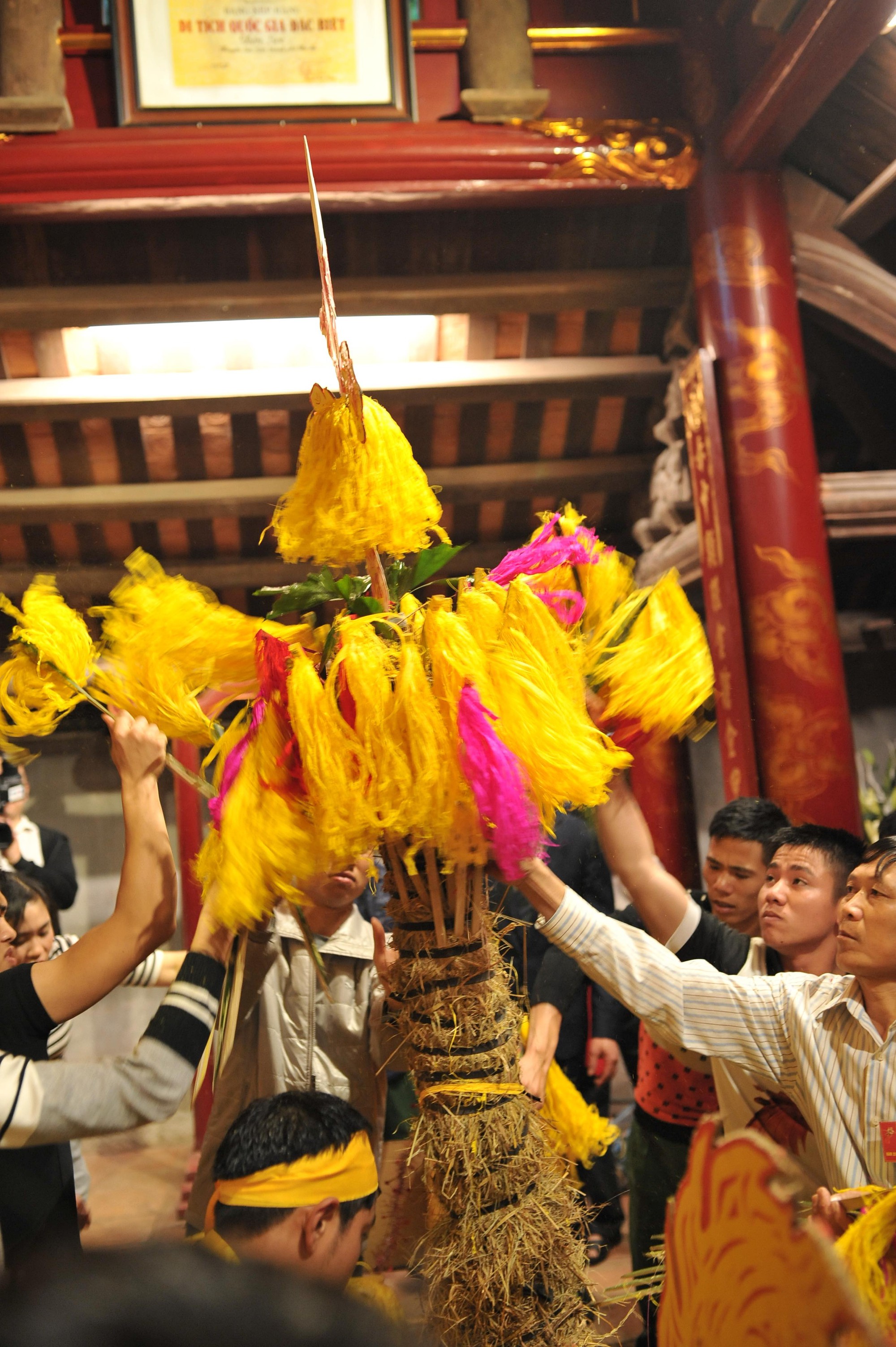 Trong cụm di tích Thánh Gióng, đền Thượng là nơi thờ Gióng và cũng là nơi cử hành lễ hội. Năm nay hoa tre không mang ra ngoài nên không có tình trạng tranh cướp như mọi năm.