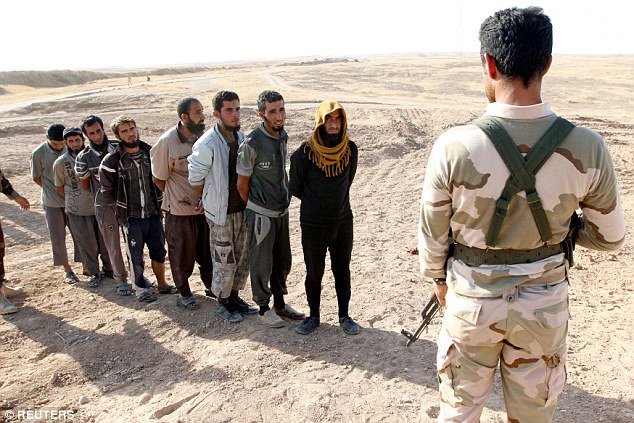Phiến quân IS đầu hàng lực lượng quân đội Iraq. Ảnh: Reuters |