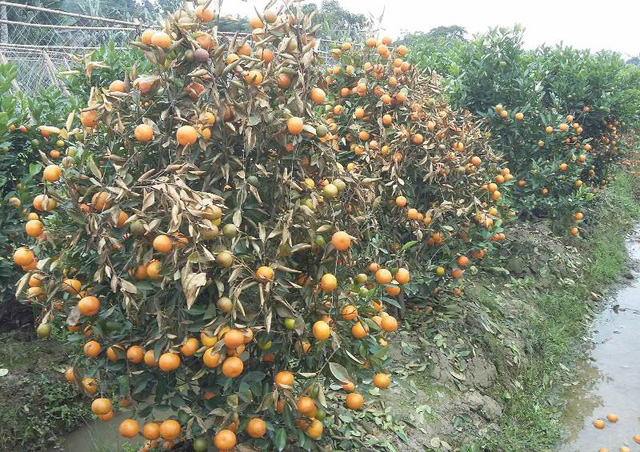 | Vườn quất bị héo khô vì bị phun thuốc diệt cỏ. Ảnh Dân trí |