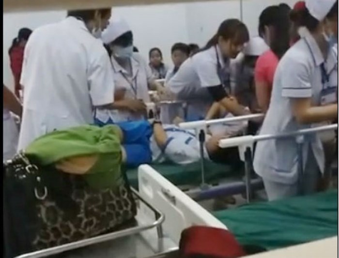 | Các học sinh tiểu học vẫn còn nôn ói khi vào bệnh viện. |