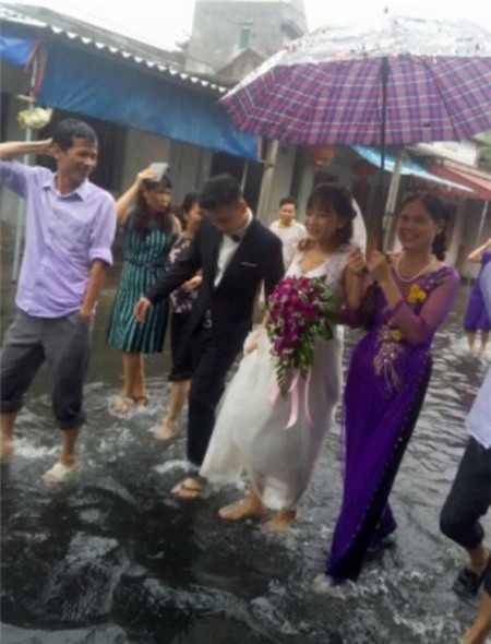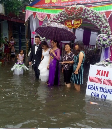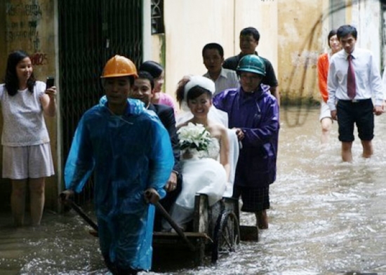 | Vào mùa lũ ở các tỉnh miền trung thì các đám cưới cũng không tránh khỏi những tình huống dở khóc, dở cười như thế này. |