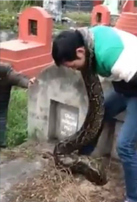 Nhiều người đã cố gắng lôi con trăn ra ngoài, tuy nhiên con trăn đã chui sâu được một nửa chiều dài cơ thể vào bên trong ngôi mộ. Thậm chí, một nam thanh niên đã quần phần đuôi con trăn vào cổ rồi cố gắng kéo trăn ra ngoài, nhưng không có kết quả.