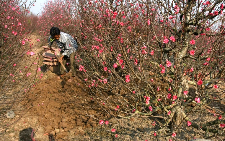 Bón phân chăm sóc cây đào sau Tết