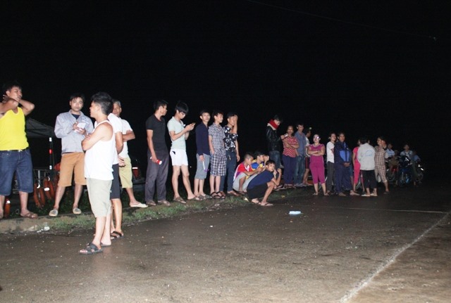 Người dân xã Gia Lạc, huyện Gia Viễn tập trung trên đê sông Hoàng Long trong đêm để theo dõi mực nước lũ. Ảnh: N.T. |