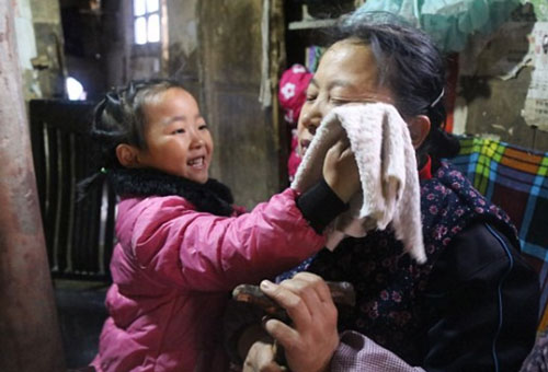 Mặc dù chưa đi học nhưng một bé gái tuổi người Trung Quốc đã trở thành trụ cột gia đình, chăm sóc cho người bà và một cụ đã già yếu.
